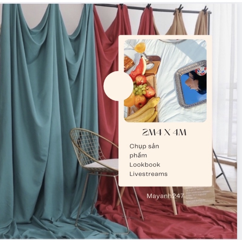 Cameras & Flycam > Phụ kiện máy ảnh > Thiết bị ánh sáng và phòng chụp || Vải trơn chụp ảnh mẫu Lookbook hoặc livetream khổ 4mx2m4Còn hàng