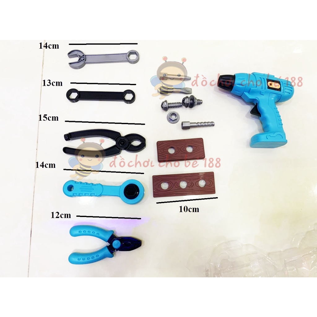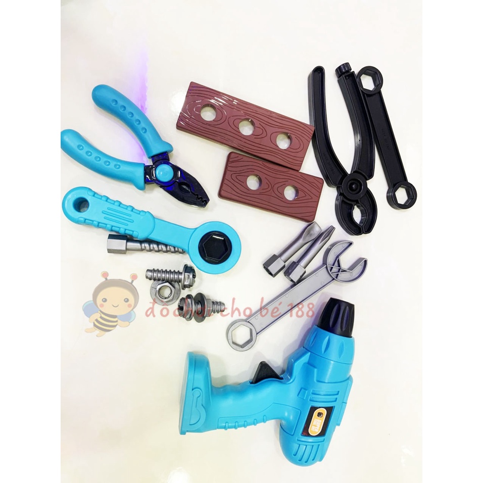 Bộ đồ chơi dụng cụ cơ khí sửa chữa nhà cửa cho bé có kìm, cà lê, vít, khoan pin ...