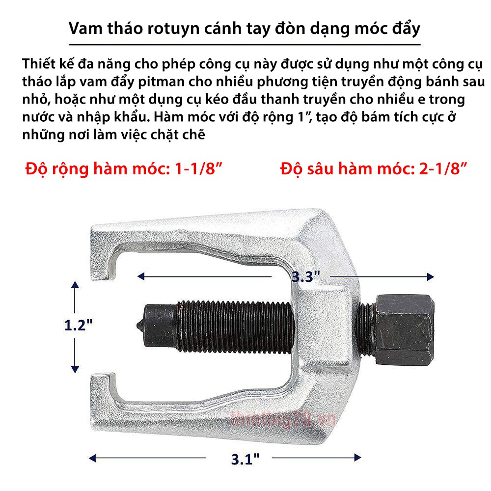 Bộ vam cảo rotuyn 5 chi tiết GDC17Bộ vam tháo rotuyn 5 chi tiết là bộ công cụ phục vụ công việc sửa chữa 5 trong 1 của việc bảo dưỡng sửa chữa hệ thống lái. Các chi tiết được thợ cơ khí chuyên nghiệp tin tưởng vào Bộ vam tháo rô tuyn đem lại, các linh kiện chất lượng cao nhất từ khắp nơi trên thế giới. Được xây dựng từ vật liệu nặng cho sức mạnh tối đa và tuổi thọ chống gỉ và ăn mòn.
