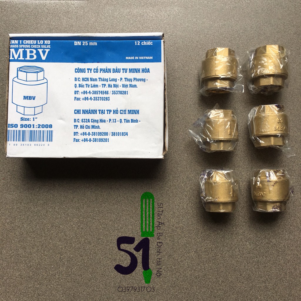 Giới thiệu Van 1 chiều đồng lò xo Minh Hòa loại dày (PN16) cỡ 26 (hoặc cỡ ren 34mm)