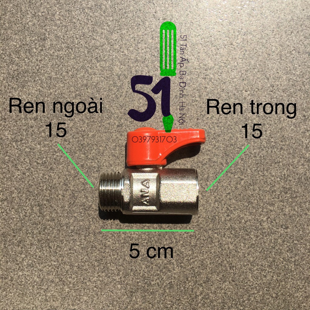 Van ANA ren trong ren ngoài cỡ 15 (hoặc cỡ ren 21mm) | Van ana (Thái Lan) | Van bi đồng 1/2F x 1/2M
