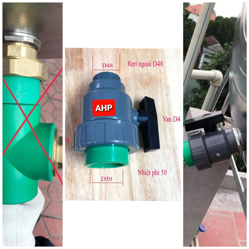 Giới thiệu Van bồn, van khóa rắc co ren ngoài 50 PPR hàn nhiệt 3 trong 1 lắp téc nước AHP