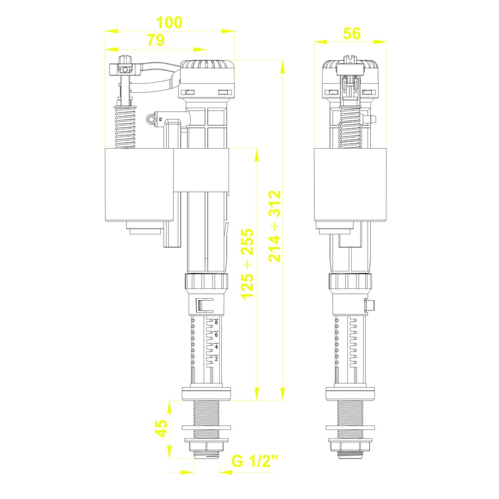 - Chiều cao ống cấp có thể thay đổi được từ 21,5cm đến 31,5cm(xem trong hình).
