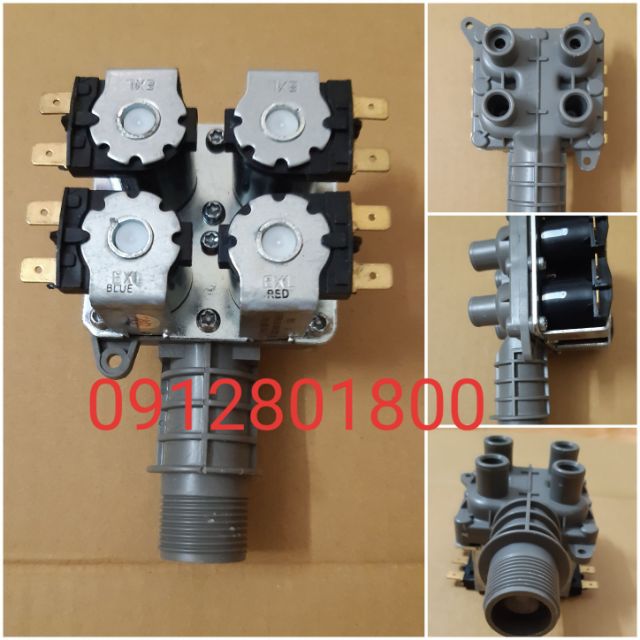 Van cấp nước 4 ngả cho máy giặt Panasonic cửa trên lồng đứng. Van cấp nước bốn máy giặt panasonic cổ dài.Hotline: 091.280.1800