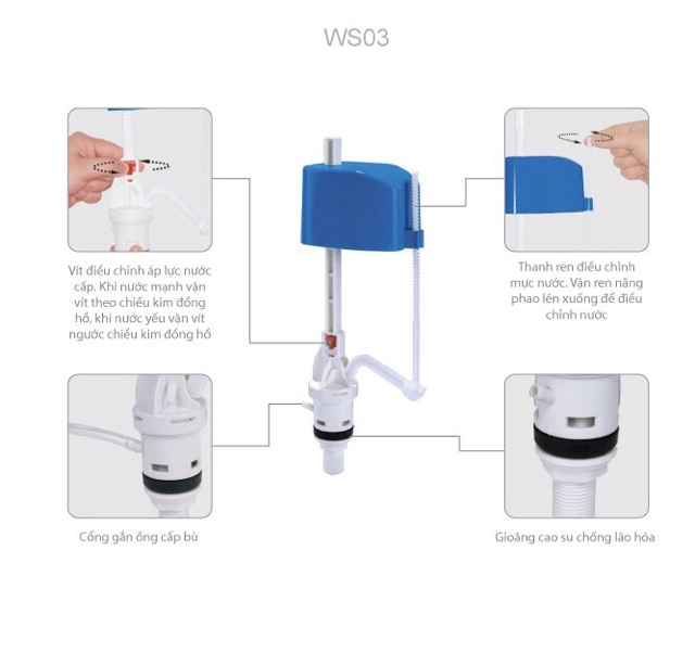 Cụm van cấp nước cho bộ xả có thể thay thế cho tất cả các loại bồn cầu