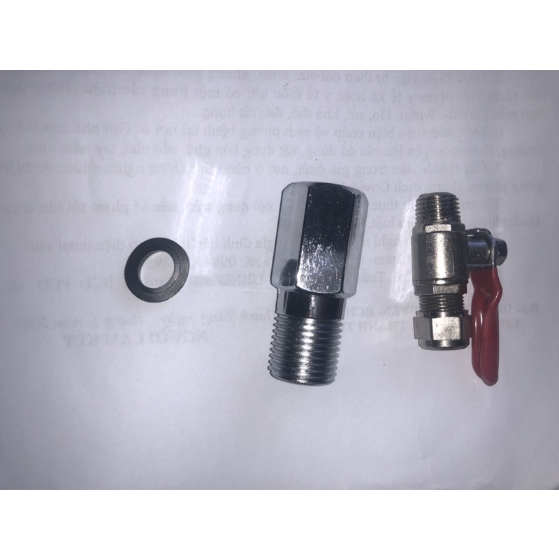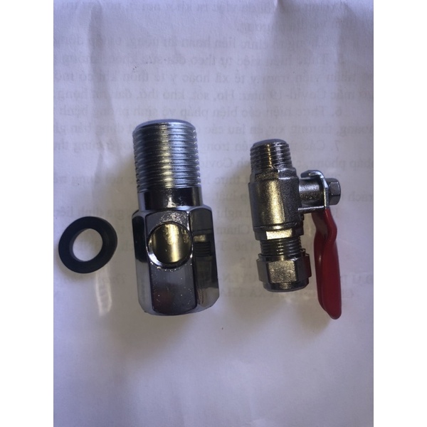 bộ sản phẩm lắp đặt lấy nước cấp cho máy lọc nước gia đình,sản phẩm gồm 1 khoá nước, 1 đầu nối gen trong, gen ngoài phi 15mm