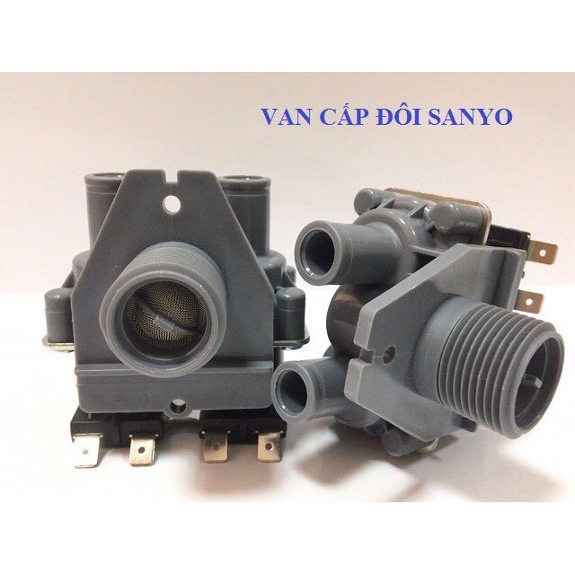 VAN CẤP NƯỚC ĐÔI MÁY GIẶT SANYOVan cấp nước là bộ phận quan trọng giúp máy giặt tự động ngắt hoặc ngừng khi đã đủ nước trong lồng giặt. Vì là van từ nên van cấp nước máy giặt cũng rất hay hỏng vặt ở một số biểu hiện như nước cấp liên tục không ngừng, máy giặt không cấp nước do van cấp nước hỏng hoặc van đã yếu làm máy giặt cấp nước chậm.