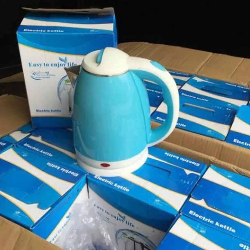 Giới thiệu sản phẩm Ấm đun nước siêu tốc 1.8L (chống nóng). . . . CHI TIẾT.Bình đun nước siêu tốc 2 lớp 1.8 LẤm đun nước là một vật dụng không.thể thiếu trong mỗi gia đình và trong cuộc sống hiện đại như hiện.nay. Bình đun nước siêu tốc tiện lợi và gọn nhẹ đang là sự lựa chọn.hàng đầu của các gia đình. Nếu bạn băn khoăn chưa biết nên chọn lựa.sản phẩm nào thì bình đun nước siêu tốc 2 lớp Electric Kettle.2.0 L sẽ là lựa chọn lý tưởng cho bạnThông tin sản phẩm bình.đun nước 2 lớp Electric Kettle :– Tên sản phẩm: Bình Đun 2 Lớp.Siêu Tốc Electric Kettle..– Dung tích : 1.8L.– Công suất/Điện áp: 1800W – 220V ~ 50Hz.– Khối lượng: 0,8kg.– Màu sắc: xanhĐặc điểm nổi bật của bình đun nước siêu tốc 2.lớp Electric Kettle :– Bình đun nước siêu tốc 2 lớp Electric Kettle.kiểu dáng hiện đại, trang nhã..– Bình cấu tạo gồm 2 lớp: lớp trong bằng inox không gỉ, lớp ngoài.bằng nhựa cách nhiệt, tuyệt đối an toàn khi sử dụng..– Tốc độ đun sôi cực nhanh, có chức năng tự động ngắt khi nước.sôi..– Nắp bình có khóa, rất an toàn cho người sử dụng..– Đế rời, có thể tháo lắp dễ dàng..– Đặc biệt bình đun có hệ thống tự ngắt điện thông minh khi có sự.cố về điện cho bạn an toànBình đun nước siêu tốc cấu tạo gồm 2 lớp:.lớp trong bằng inox không gỉ, lớp ngoài bằng nhựa cách nhiệt, tuyệt.đối an toàn khi sử dụng.Tốc độ đun sôi cực nhanh, có chức năng tự.động ngắt khi nước sôi.Nắp ấm có khóa, rất an toàn cho người sử.dụng.Đặc biệt Ấm đun có hệ thống tự ngắt điện thông minh khi có sự.cố về điện cho bạn an toàn tuyệt đối khi sử dụng.Giá LAY