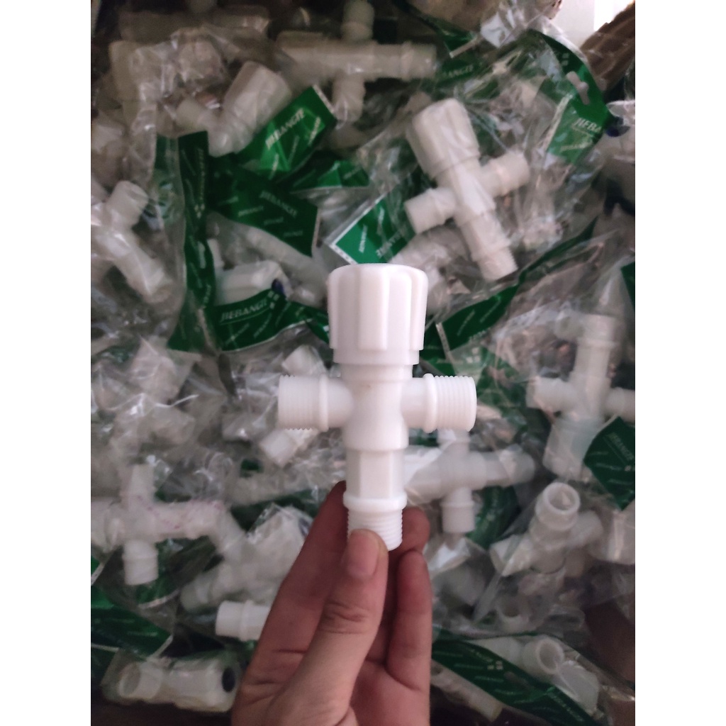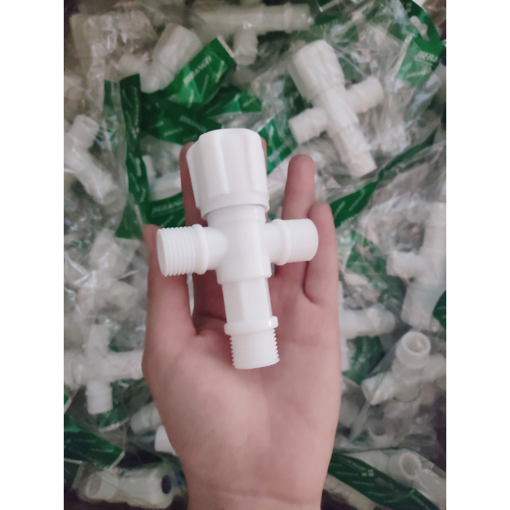 VAN CÓ KHÓA CHIA 2 NHÁNH Van T chia nước bồn cầu nhựa-van khóa giảm áp lực nước