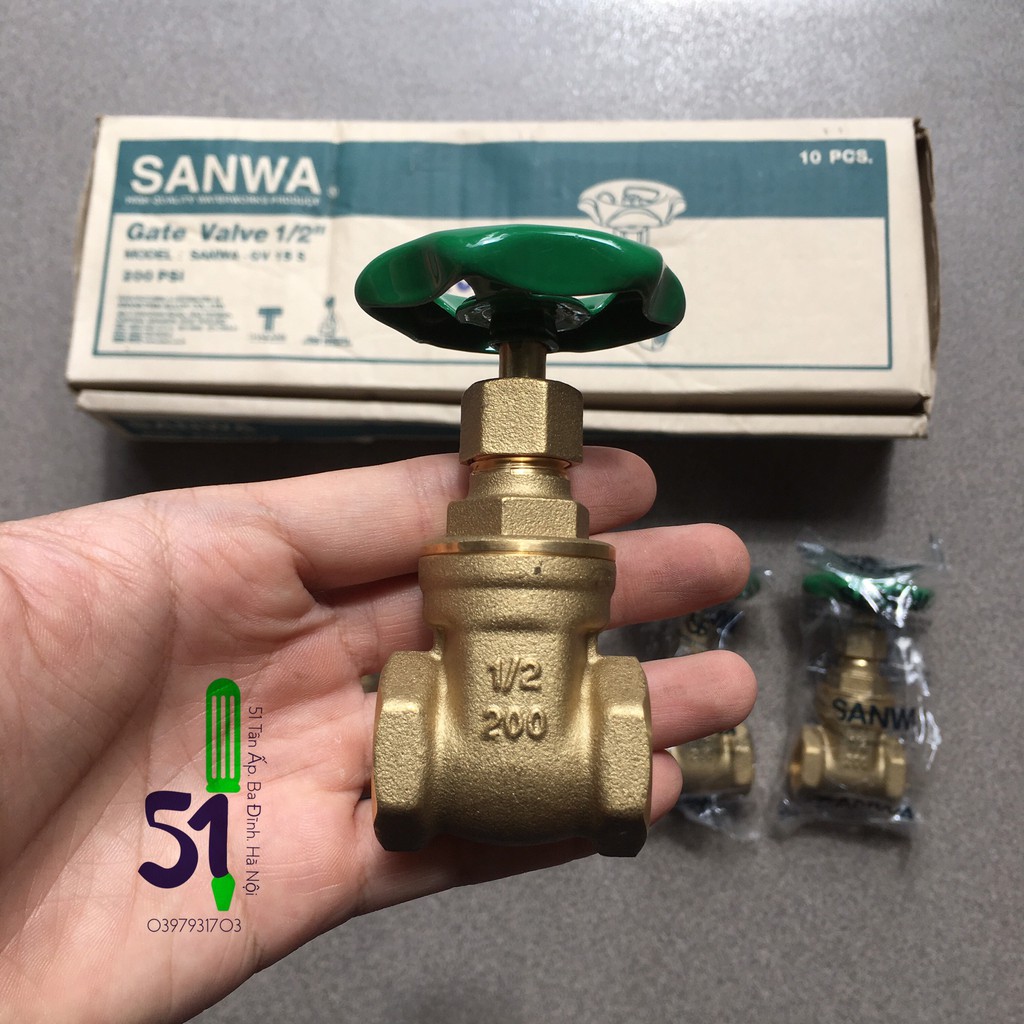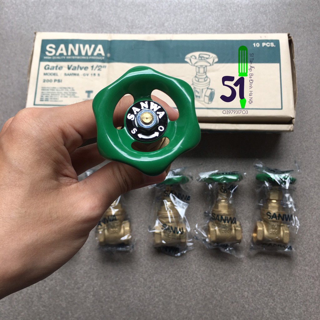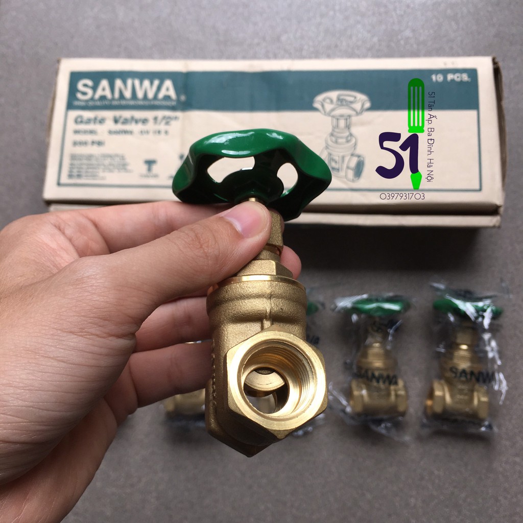 Van cửa đồng Sanwa cỡ ren 15 (hoặc cỡ ren 21mm) | Van cổng đồng tay vặn