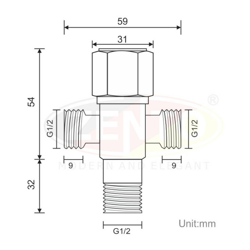 - Ren vặn có kích thước G1/2 (ren ngoài phi 21mm) tiện lợi khi lắp đặt cùng hệ thống vòi xịt, cấp nước cho bàn cầu hay đường nước cho máy giặt...