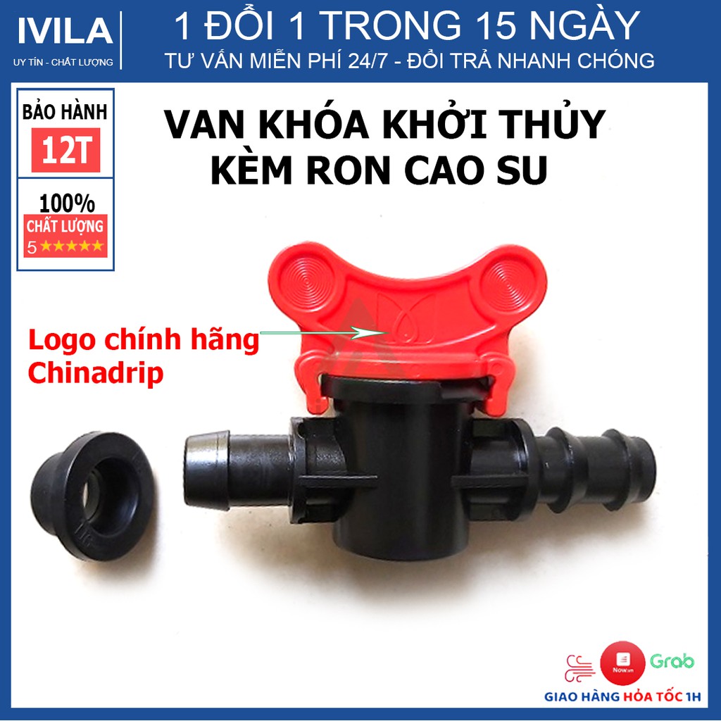 Van khóa khởi thủy LDPE 16 kèm gioăng cao su - Van khóa 1 đầu khởi thủy 16mm, 1 đầu ra ống LDPE 16mm