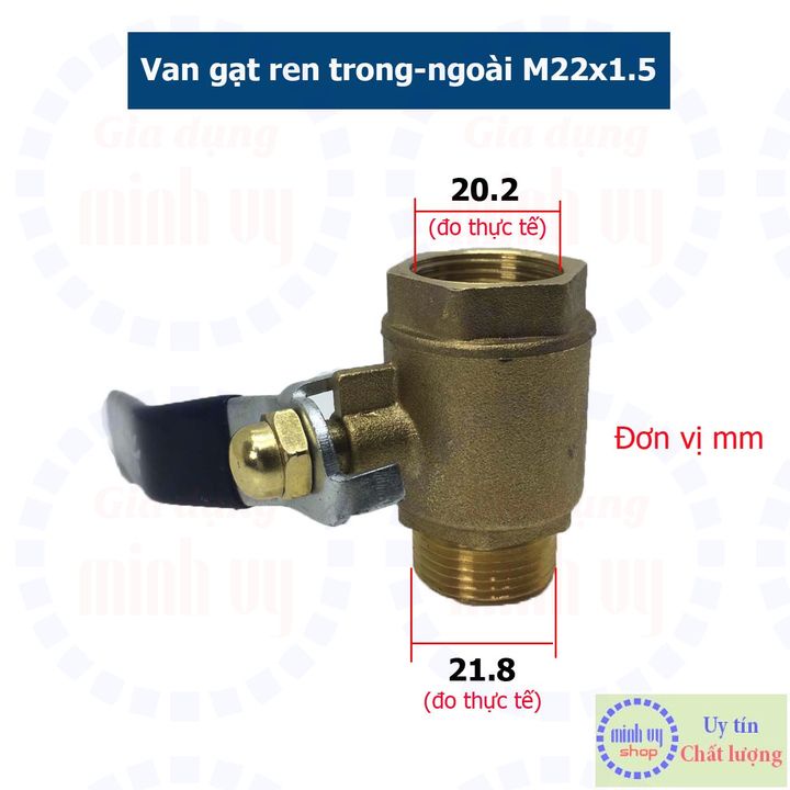 Van khóa - van gạt đồng ren trong ngoài 22mmx1.5