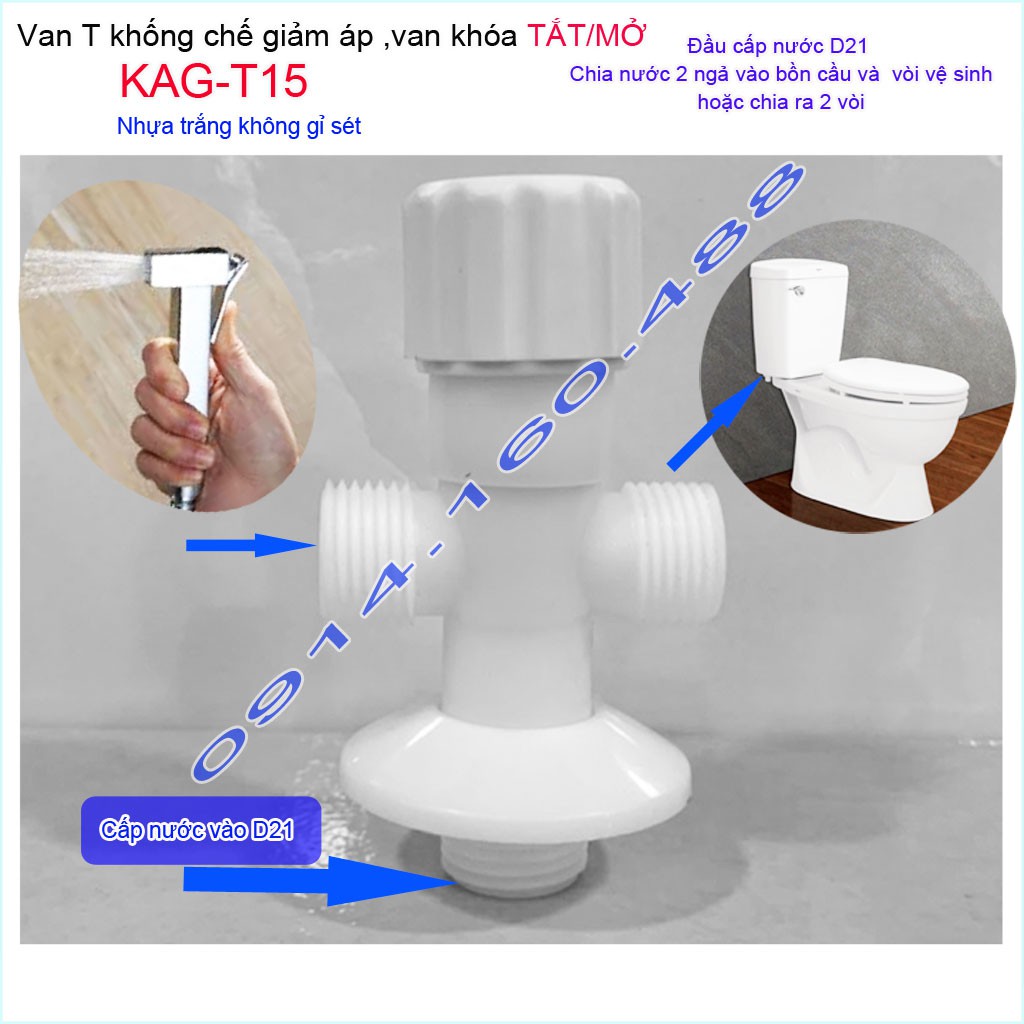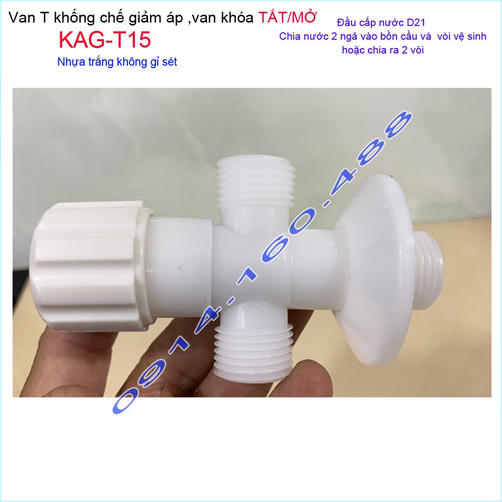 Van khống chế nhựa KAG-T15, van giảm áp T khóa chia nước 100% nhựa trắng dùng cho vùng nước phèn nước mặn siêu bền không