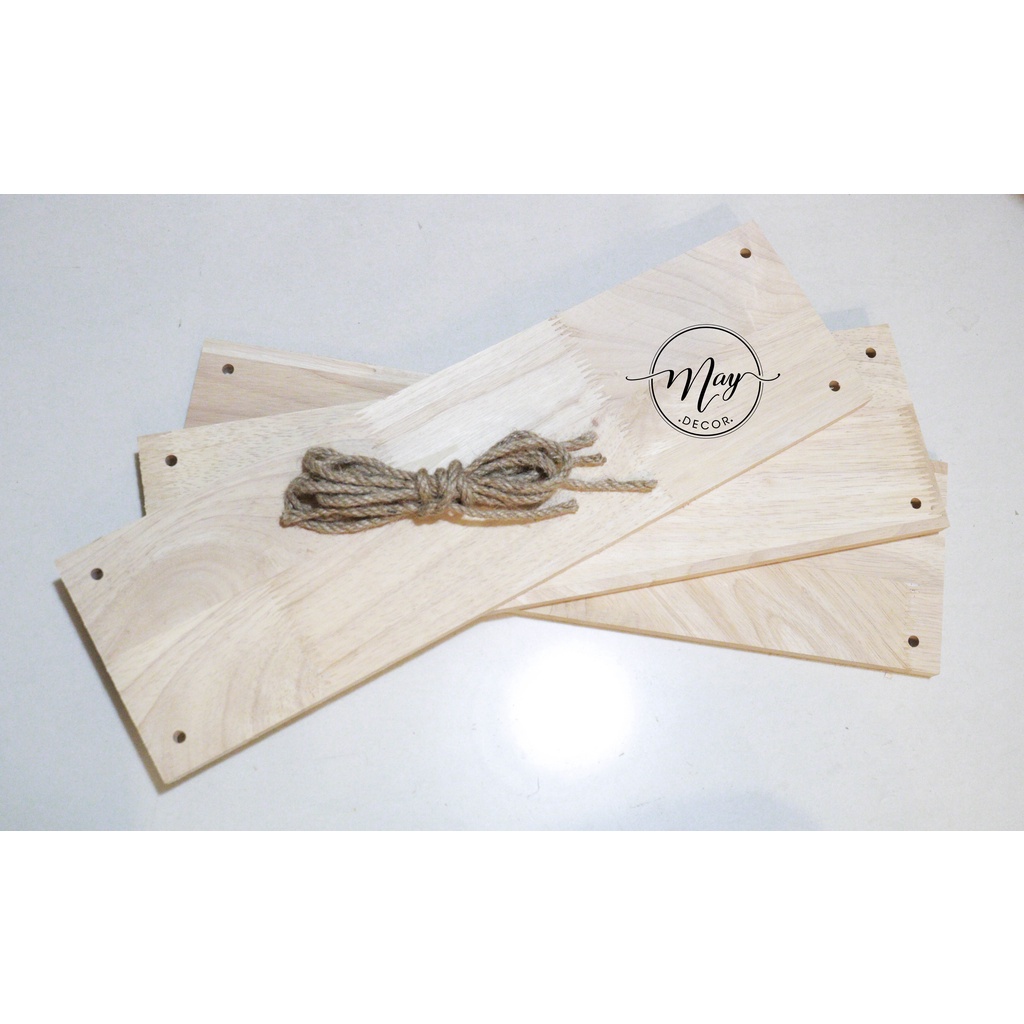 Ván gỗ tự nhiên màu sáng bào nhẵn 6 mặt , mặt ván có mắt và vân ngẫu nhiên tùy theo tấm tuy nhiên được xử lý phẳng phiêu và láng mịn.Ván Đã khoan sẵn 4 lỗ có thể dùng làm kệ treo hoặc làm kệ macrame....
