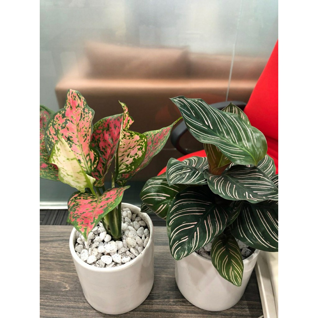 Chậu sứ đường kính 11 cm. Kích thước cây từ 25 đến 30 cm.