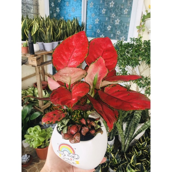 ❌ Vạn lộc lá đỏ mix với cẩm nhung 2 màu xanh đỏ lại hợp quá ạ 🤣 Nhà e là hẳn 2 cây vạn lộc đỏ nha, k phải 1 cây đâu ạ . Trồng trong 1 cái chậu sứ asa in hình ngộ nghĩnh k còn gì để chê luôn ạ ❤️✅ Mẫu này e chỉ ship hoả tốc thôi ạ. để đảm bảo chất lượng cây ạ