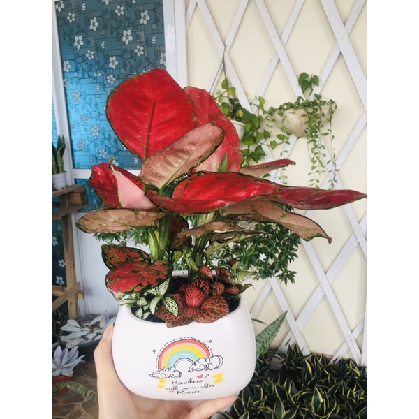 Nhà cửa & Đời sống > Làm vườn > Cây cảnh || Vạn lộc đỏ mix cẩm nhung kèm chậu sứ asa inCòn hàng