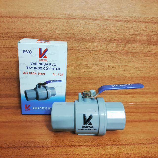 Van nhựa 34mm (∅34) KORVAL tay cầm inox cốt thau - Sản xuất theo công nghệ Hàn Quốc