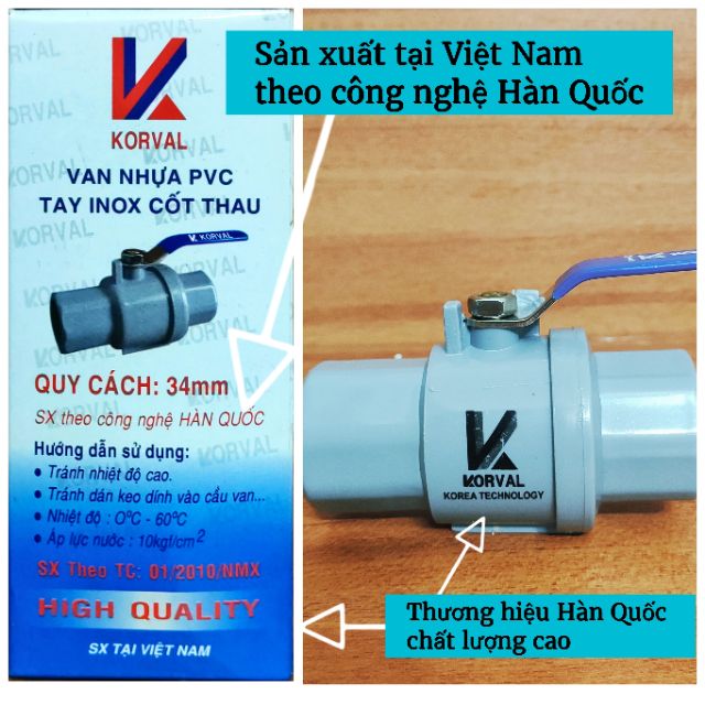 Giới thiệu Van nhựa 34mm (∅34) KORVAL tay cầm inox cốt thau - Sản xuất theo công nghệ Hàn Quốc