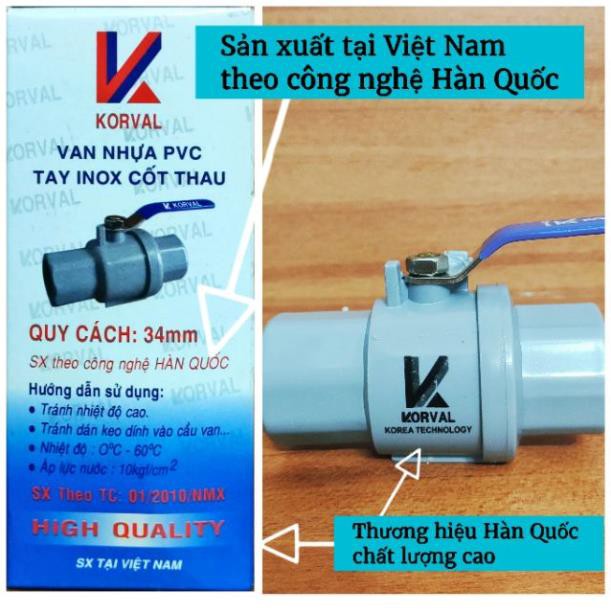 Van nhựa 34mm (∅34) tay cầm inox cốt thau - Sản xuất theo công nghệ Hàn Quốc-Giadung24h