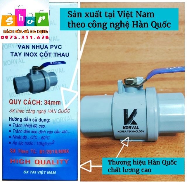 Giới thiệu Van nhựa 34mm (∅34) tay cầm inox cốt thau - Sản xuất theo công nghệ Hàn Quốc-Giadung24h