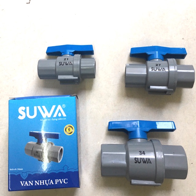 Tên sản phẩm : Van nhựa PVC suwa, bảo hành 6 tháng, 21 mm - 27 mm - 34 mmCông dụng : dùng để điều chỉnh lưu lượng nguồn nước sinh hoạt dân dụng và tưới tiêu cây trồng