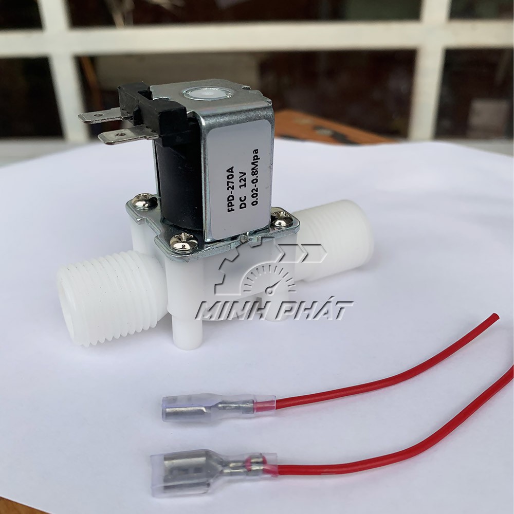 -Van nước điện từ van điện từ 12m ren 21Cơ chế hoạt động : Bình thường khi ko cấp điện, van ở trạng thái thường đóng. Khi có điện vào, van điện từ mở. Ngắt điện, van đóng.