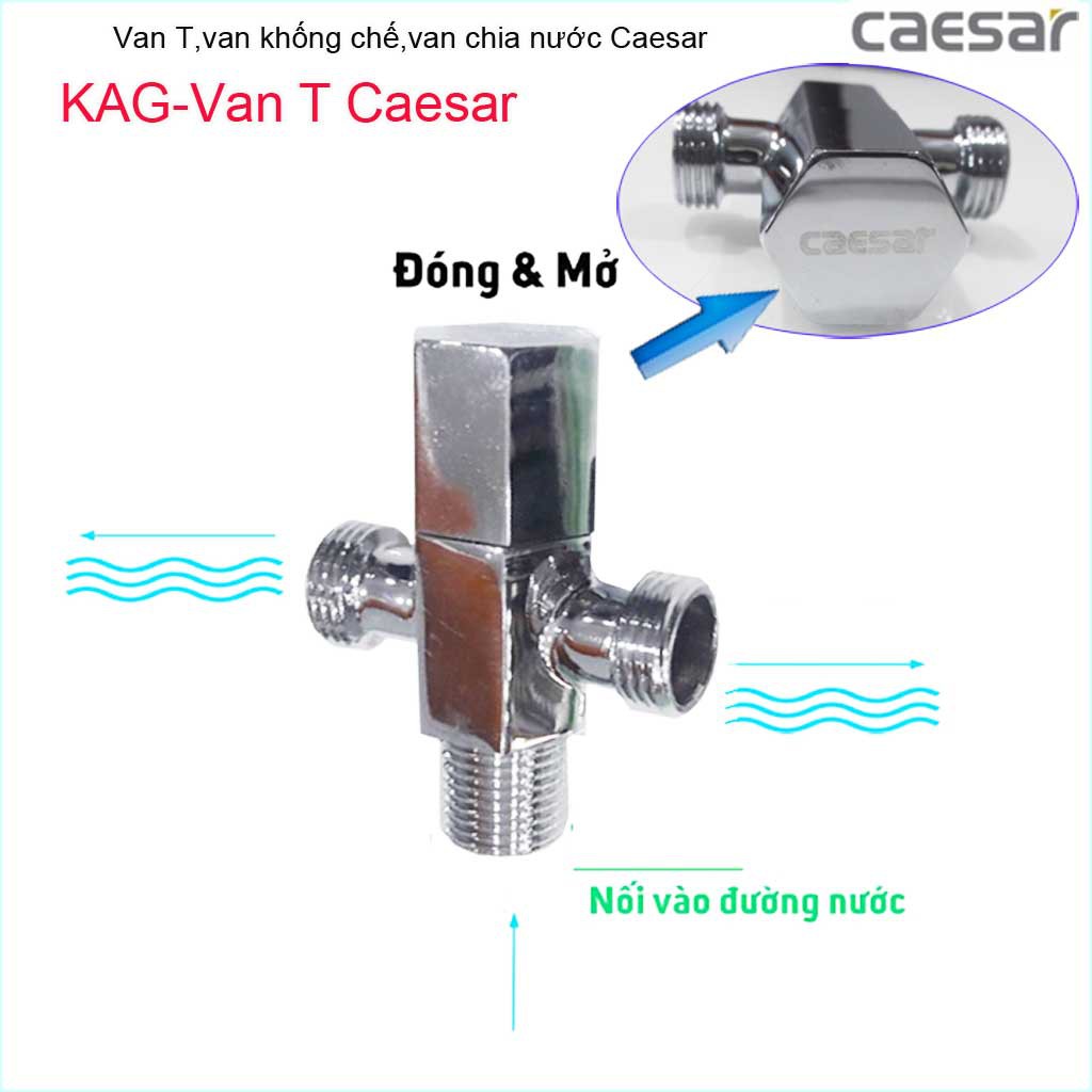 Van giảm áp lực nước chữ T , van vòi Caesar KAG-Van T Caesar sử dụng để làm giảm áp lực nước cho vòi nước và bàn cầu, van vòi Caesar KAG-Van T Caesar sử dụng để chia nước từ 1 nguồn nước trong tường chia thành 2 nguồn nước: 1 nguồn gắn với vòi xịt, 1 nguồn gắn với dây cấp nước cho bồn cầu, van vòi Caesar KAG-Van T Caesar dùng nối với đầu chờ ren ngoài D21( đường kính 2.1cm)