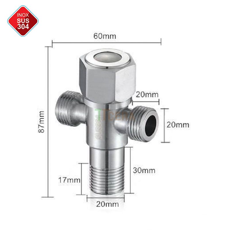 Van T cầu , T cầu. Giảm áp chia bồn cầu Inox SUS 304,Van T Chia Nước cho vòi xịt vệ sinh và bồn cầu inox
