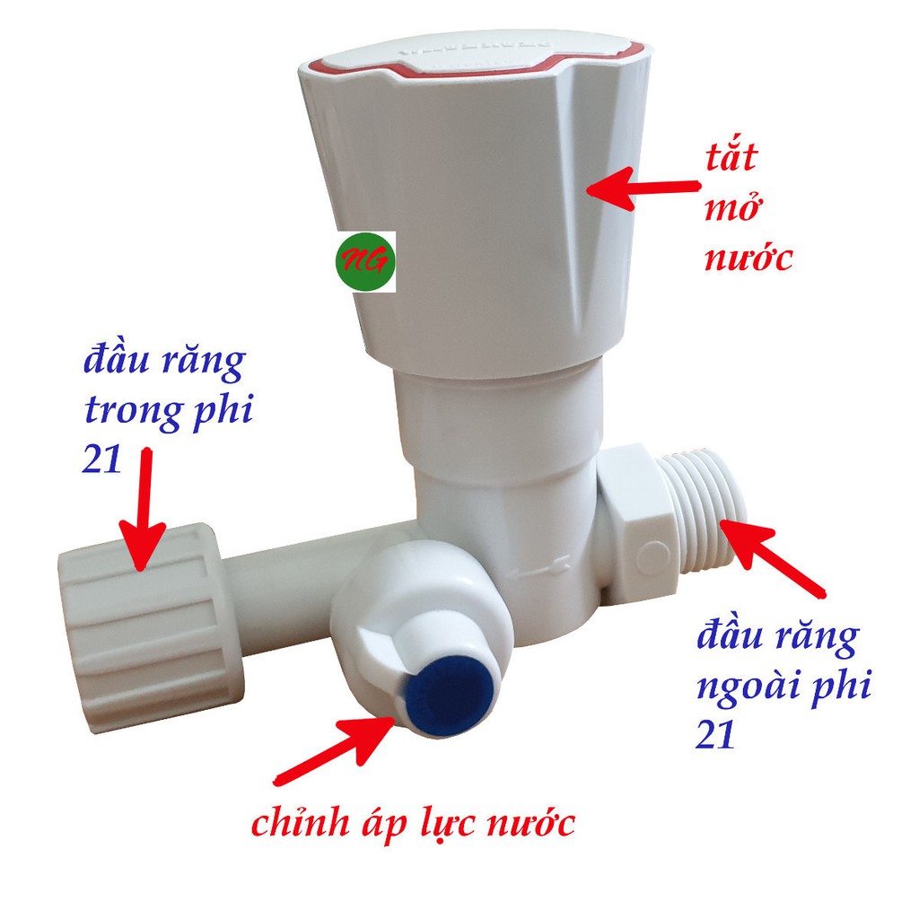 Van này là van tắt mở nước , thiết kế dùng để thay thế cho van của máy nước nóng phòng tắm .Thiết kế 2 đầu nối với 1 đầu là răng ngoài phi 21 , 1 đầu là răng trong phi 21.