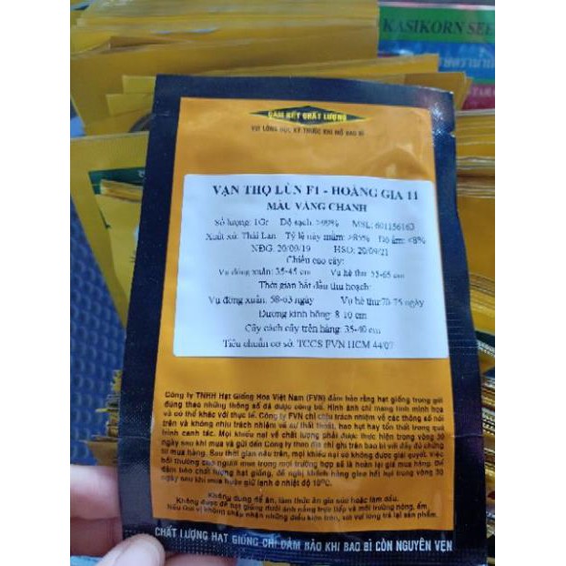 Khối lượng: 1gramLà dòng Vạn thọ F1 được hầu hết các nhà vườn biết đến: sớ hoa nhuyễn, đường kính hoa lớn, mặt hoa vung tròn, màu sắc hoa rực rỡ là những đặc điểm nổi bật của dòng sản phẩm này.