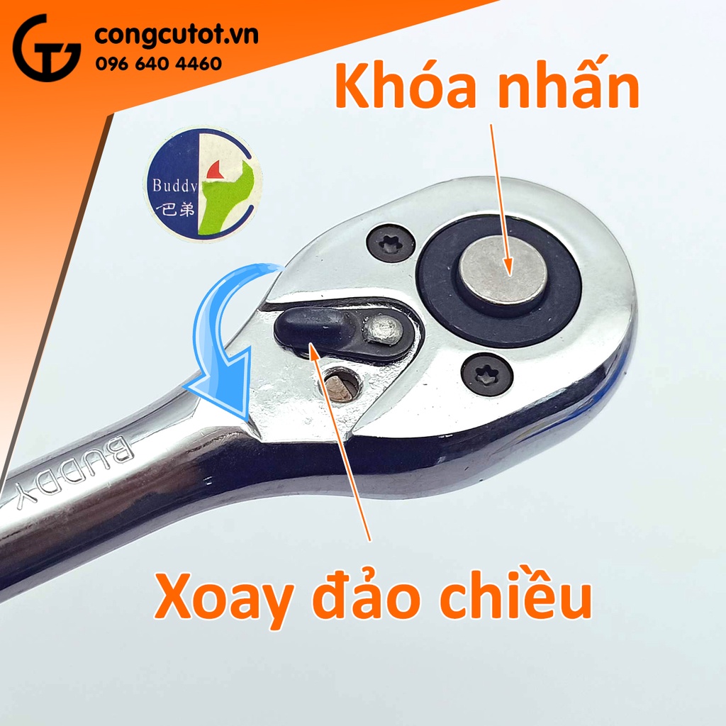 Cần vặn tuýp tự động xoay đảo chiều 3/8 khóa nhấn Buddy A0046