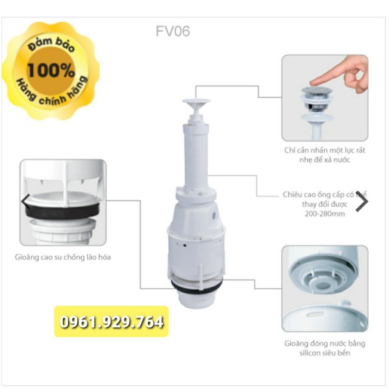 VAN XẢ BỒN CẦU KÉT RỜI 1 NÚT NHẤN SIÊU NHẸ FV06 KÈM NÚT NHẤN