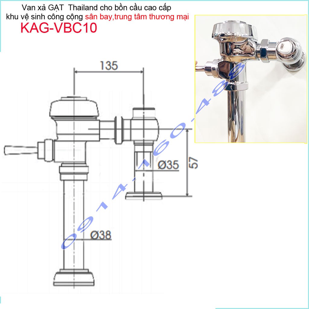 Giới thiệu Van xả gạt bồn câu KAG-VBC10, van xả cho bồn cầu Toto, Inax treo tường không thùng nước( không bồn cầu)