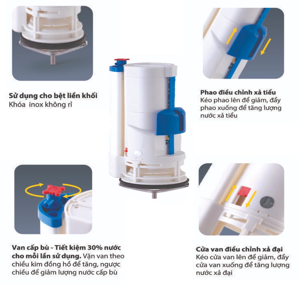 - Van có thể điều chỉnh lượng nước xả đại - xả tiểu