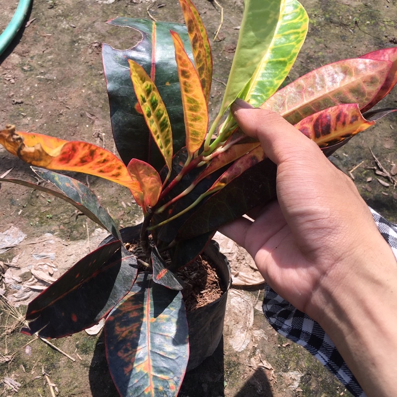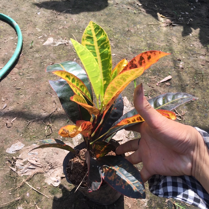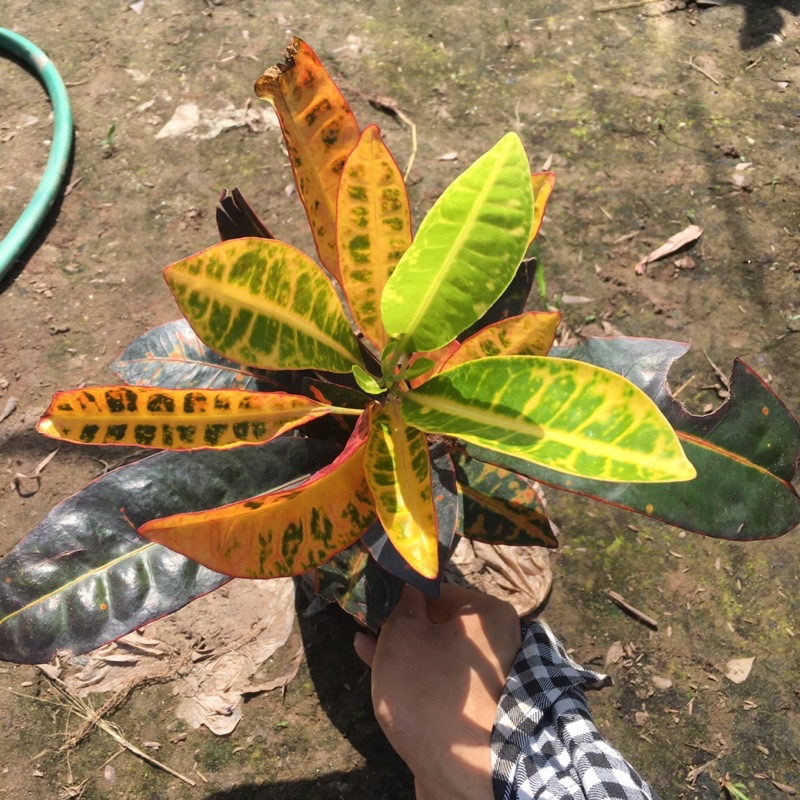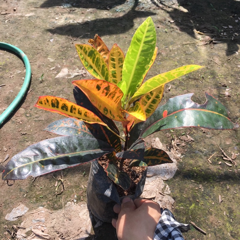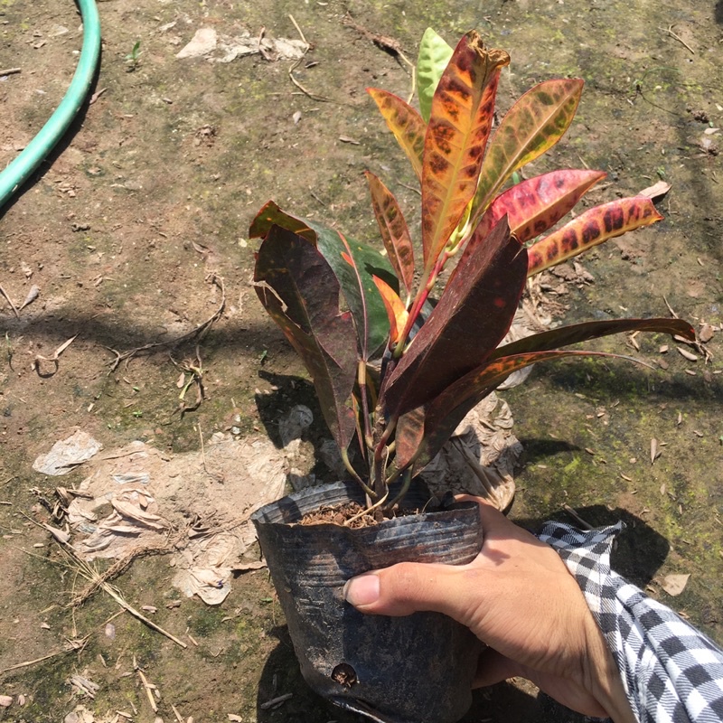 + Cây có lá màu xanh, đỏ vàng lẫn nhau, lá bản to và dày.