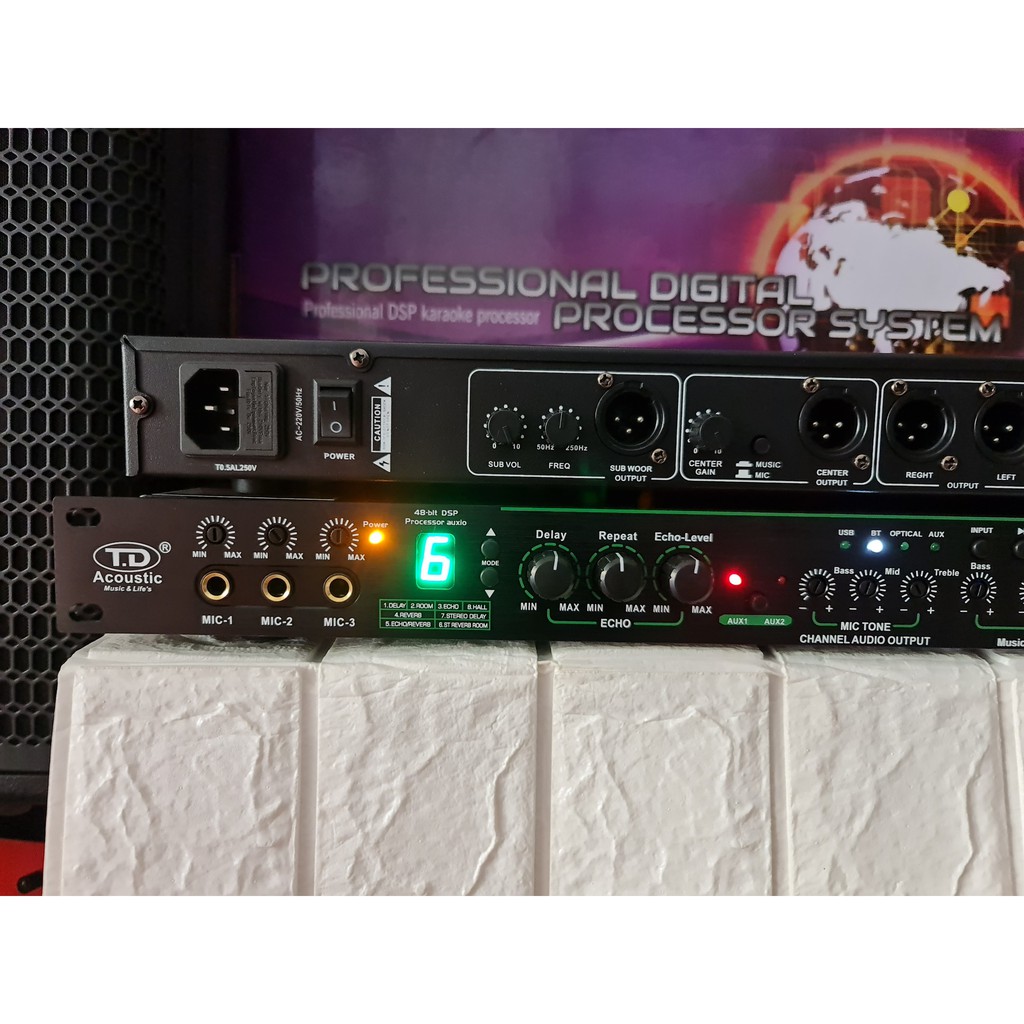 + Chip IC xử lý hiệu ứng âm thanh DSP 2.0 nhập khẩu từ USA giúp chất âm của sản phẩm trở lên vượt trội hơn chuyên sử dụng trong các con vang số