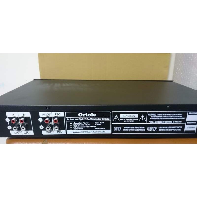 Mixer Echo karaoke Oriole xử lý tiếng vang (echo) và tiếng hồi (reveb) được thiết lập chính xác, giúp cho âm thanh của Mic đạt được hiệu quả cao như thoát, và nhẹ mức tiêu thụ điện năng thấp, không bị nóng khi hoạt động lâu, độ bền cực cao.