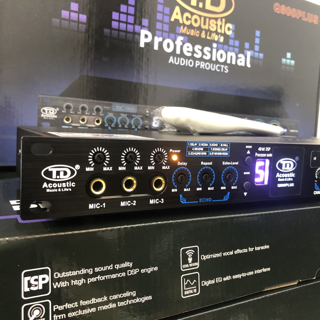 Thiết Bị Âm Thanh > Amply và đầu chỉnh âm || Vang Lai Số TD Q800 Plus 2021 Có Điều Khiển(Có Reverb)(Tặng 2 Dây CANON): 8 Chế Độ Hát .,BLUETOOTH,USB,OPTICAL,AVCòn hàng