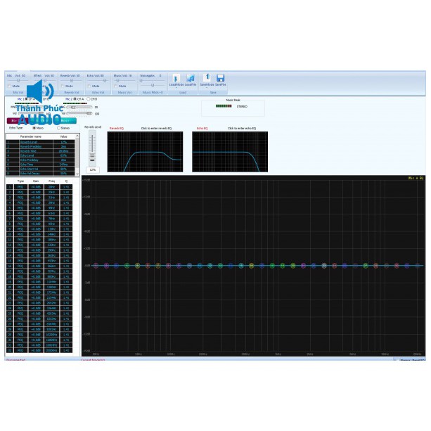 Dòng vang số khủng nhất với 32 cần EQ mic 1, 32 cần EQ mic 2 và 32 cần EQ Music.