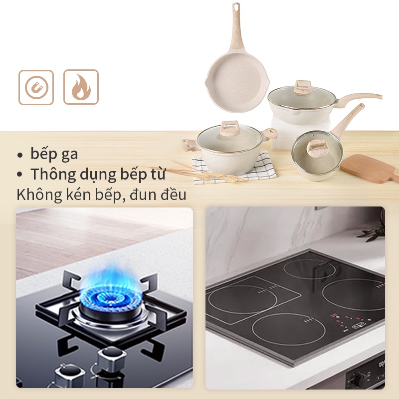 - Nồi không kén bếp: bếp từ/bếp ga/bếp gốm điện.