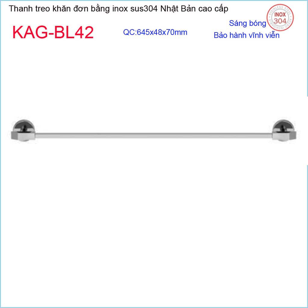 Thanh vắt khăn đơn KAG-BL42, Thanh treo khăn nhà tắm SUS304 Nhật Bản đế tròn dập khuôn sáng bóng thiết kế đẹp tính tế
