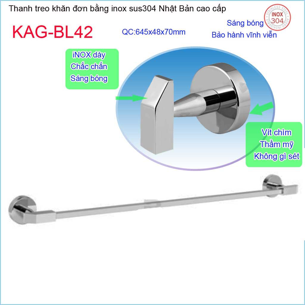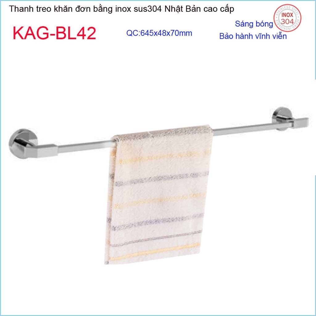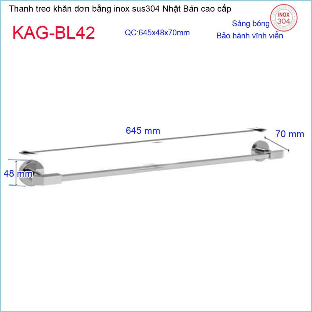 Giới thiệu Thanh vắt khăn đơn KAG-BL42, Thanh treo khăn nhà tắm SUS304 Nhật Bản đế tròn dập khuôn sáng bóng thiết kế đẹp tính tế