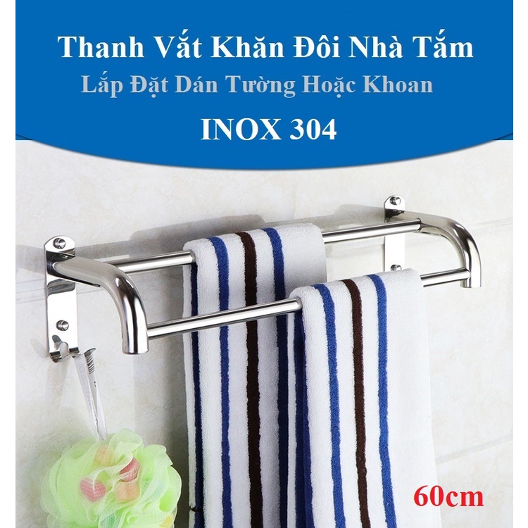 Thanh Vắt Khăn Nhà Tắm INOX 304 Kích Thước 60cm Lắp Đặt Dán Tường Hoặc Khoan Tường Siêu Chắc- OENON