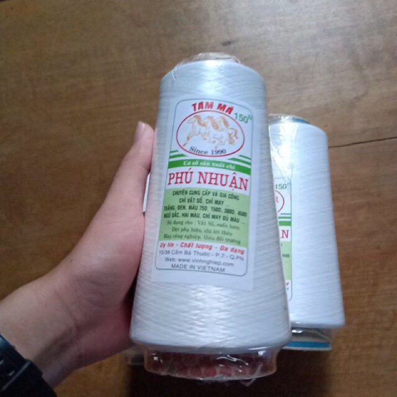 Đây là chỉ vắt sổ, ống nhỏ 250gr, loại sợi 150 thương hiệu chỉ Phú Nhuận. Chiều cao ống là 25cm, lõi giấy.Mình có bán 2 màu đen và trắng