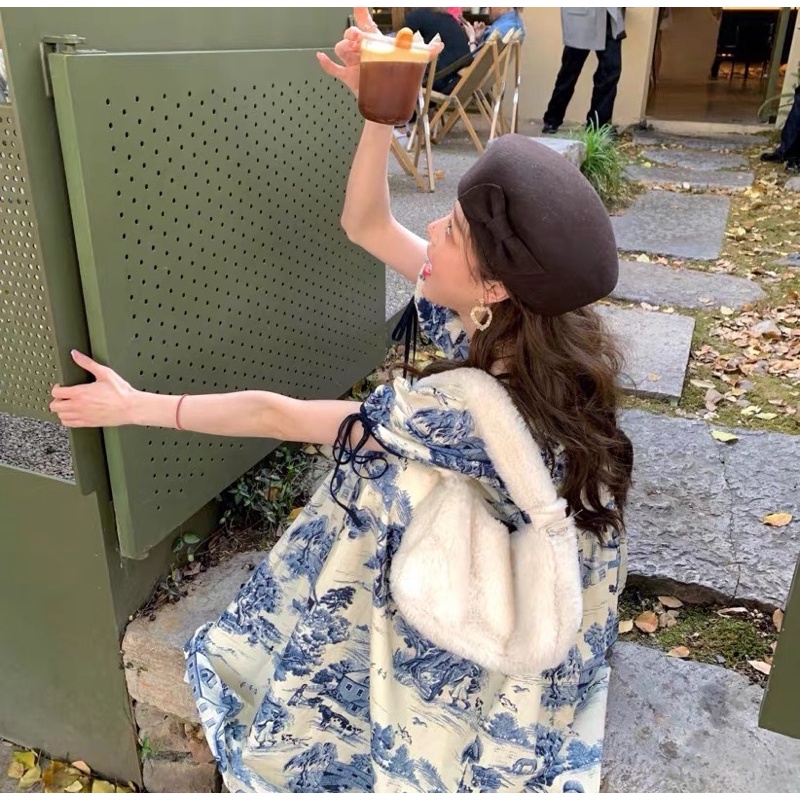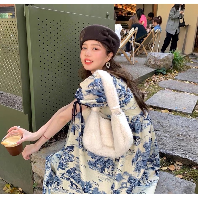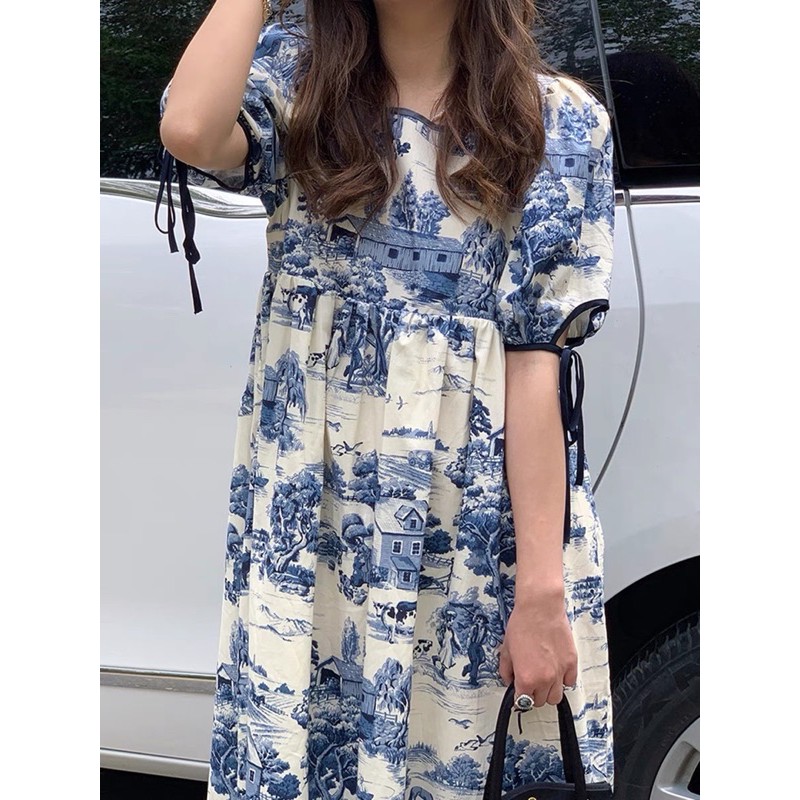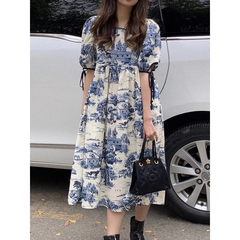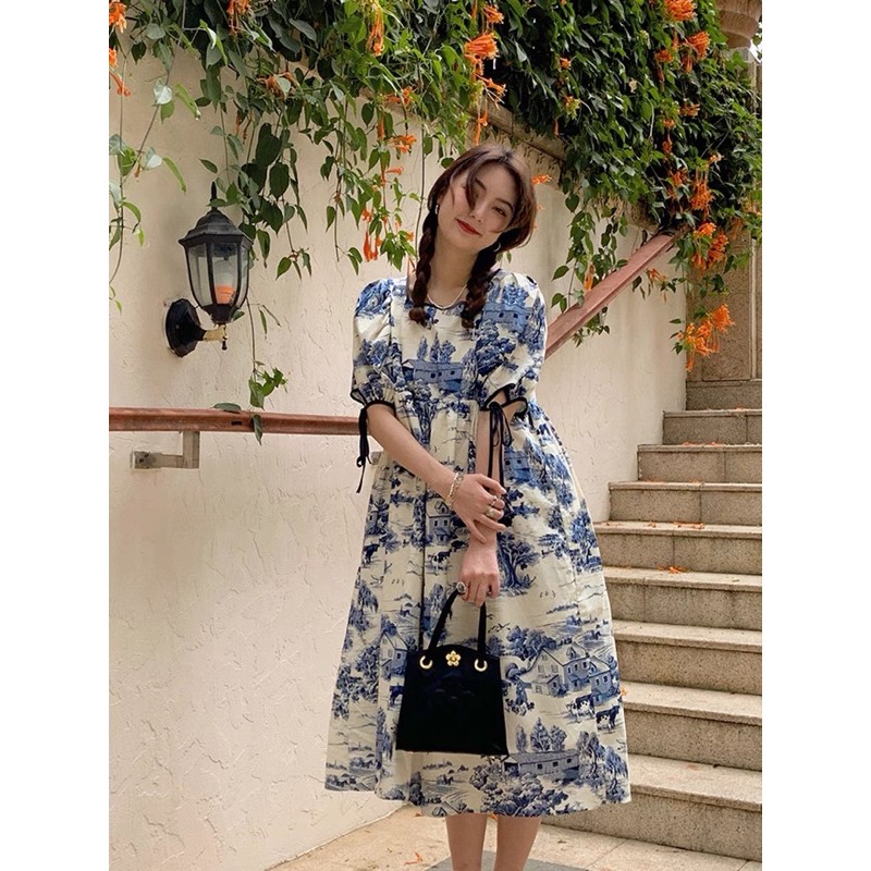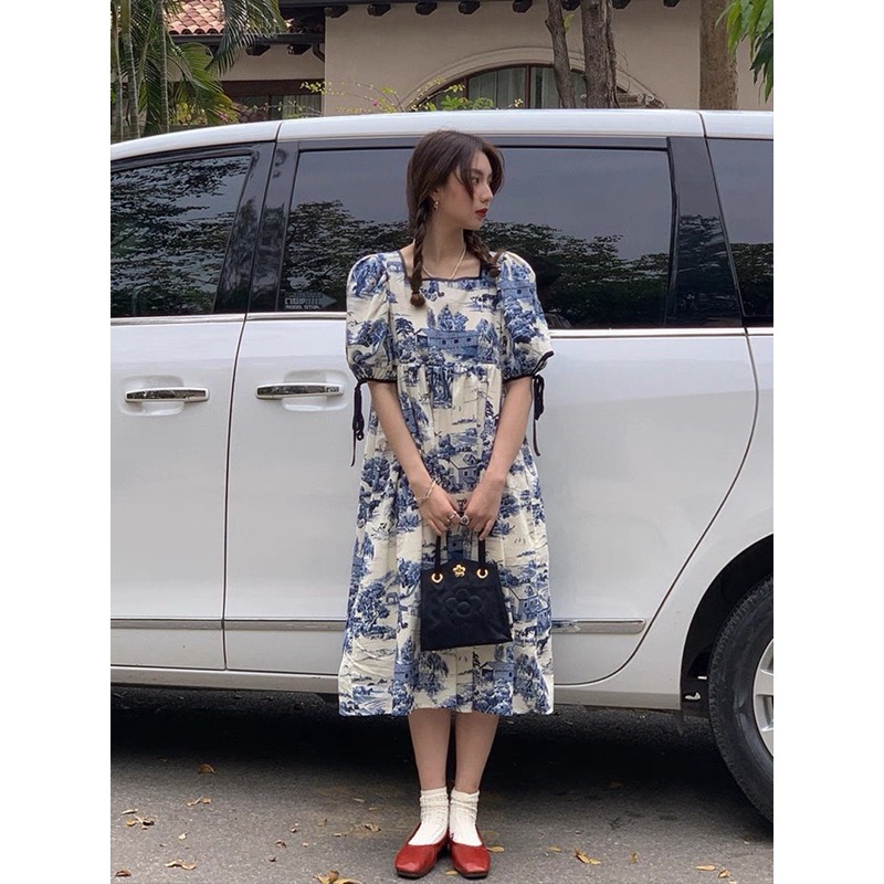 Váy hoạ tiết sơn dầu cổ điển pháp 2021