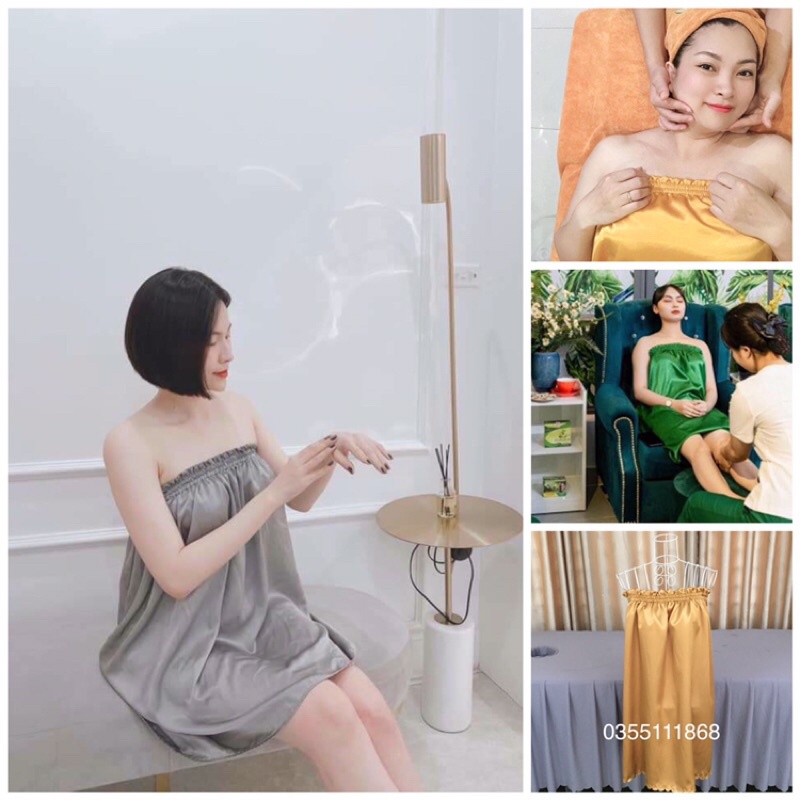 Nhà cửa & Đời sống > Đồ dùng phòng tắm > Khăn mặt, khăn tắm, áo choàng tắm > Áo choàng tắm || Váy quây phi lụa Spa HÀNG LOẠI 1 chất lụa đẹp, mềm mịn, thoáng mátCòn hàng
