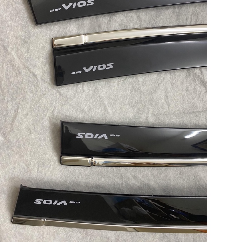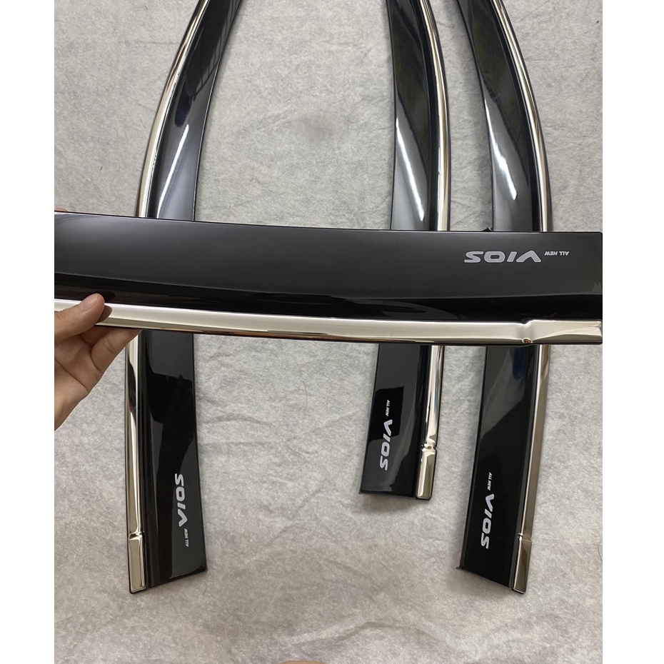 VÈ CHE MƯA CHỈ INOX CAO CẤP XE TOYOTA VIOS 2014 - 2015 - 2016 - 2017Với khí hậu mưa nhiều ở Việt nam việc lắp vè che mưa cho xe có tác dụng ngăn chặn nước mưa rò rỉ qua khe cửa của xe.