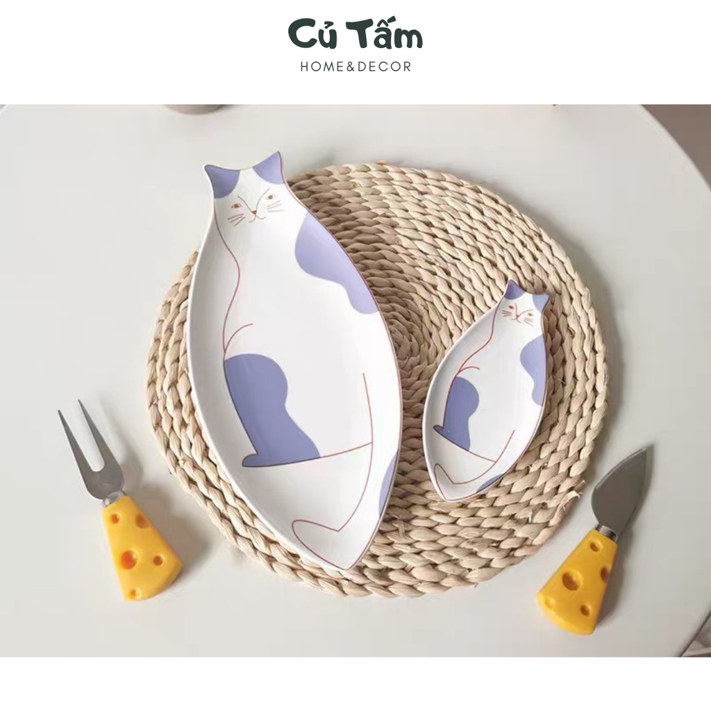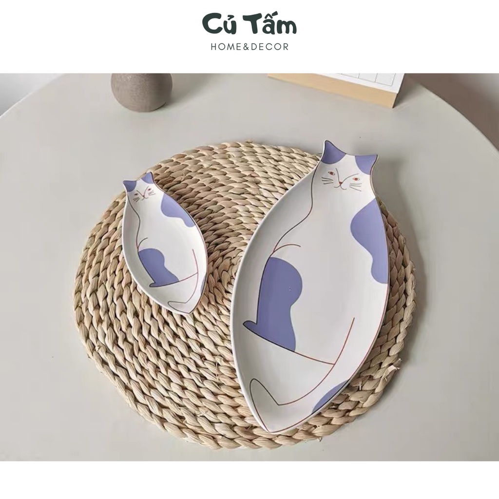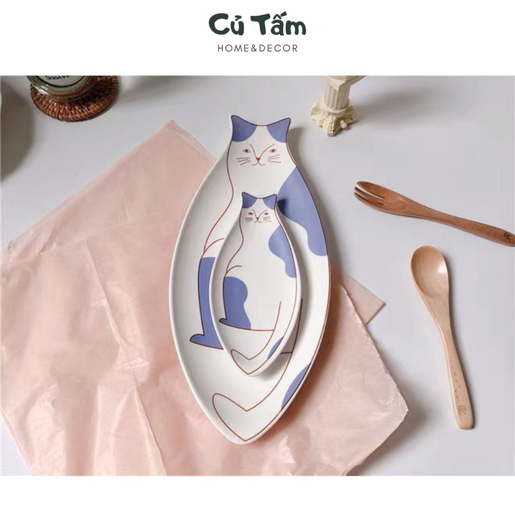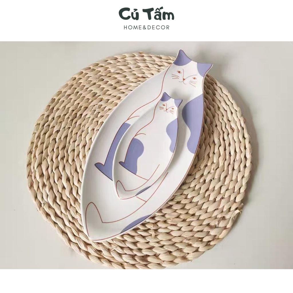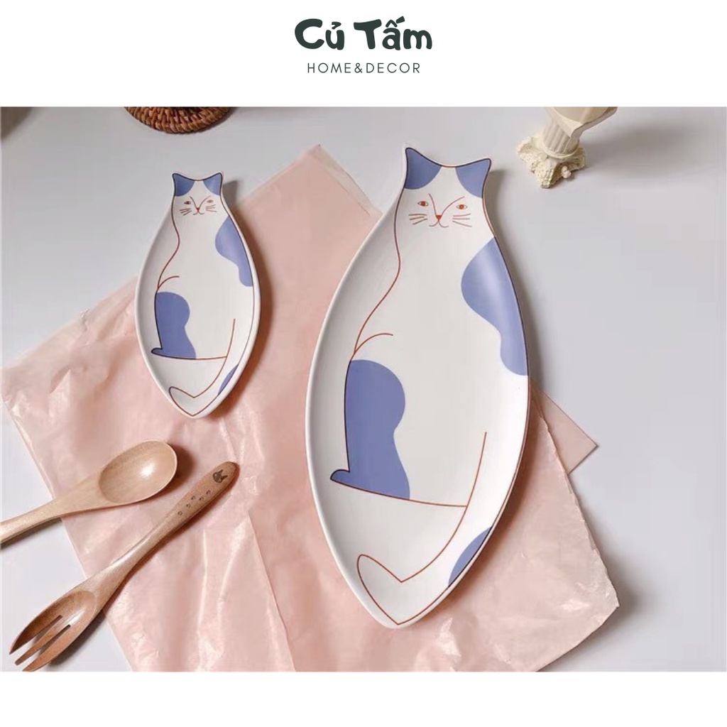 (Mới về) Đĩa sứ tráng men họa tiết mèo con độc đáo, đĩa đựng đồ ăn phong cách Hàn Quốc - cutam.homedecor